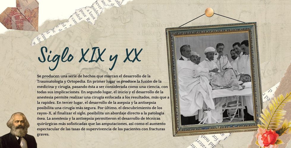 Se producen una serie de hechos que marcan el desarrollo de la Traumatología y Ortopedia. En primer lugar se produce la fusión de la medicina y cirugía, pasando ésta a ser considerada como una ciencia, con todas sus implicaciones. En segundo lugar, el inicio y el desarrollo de la anestesia permite realizar una cirugía enfocada a los resultados, más que a la rapidez. En tercer lugar, el desarrollo de la asepsia y la antisepsia posibilita una cirugía más segura. Por último, el descubrimiento de los rayos-X, al finalizar el siglo, posibilita un abordaje directo a la patología ósea. La anestesia y la antisepsia permitieron el desarrollo de técnicas quirúrgicas más sofisticadas que las amputaciones, así como el aumento espectacular de las tasas de supervivencia de los pacientes con fracturas graves. y también, gracias a Karl Landsteiner se clasifica la sangre de los seres humanos en los grupos A, B, AB y O. Landsteiner recibe el Premio Nobel de Fisiología o Medicina 1930 por su descubrimiento.